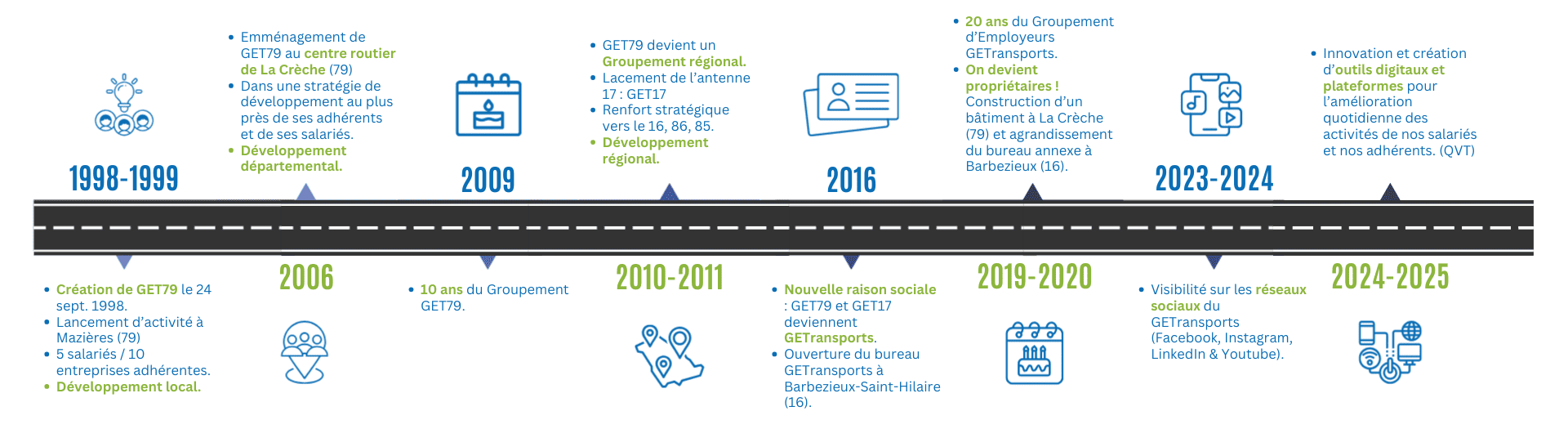 Fondée en 1998, GETransports est une association créée par des transporteurs, pour des transporteurs. Depuis ses débuts, elle s’engage à promouvoir des valeurs humaines fortes et à favoriser le partage de compétences au sein de son réseau.